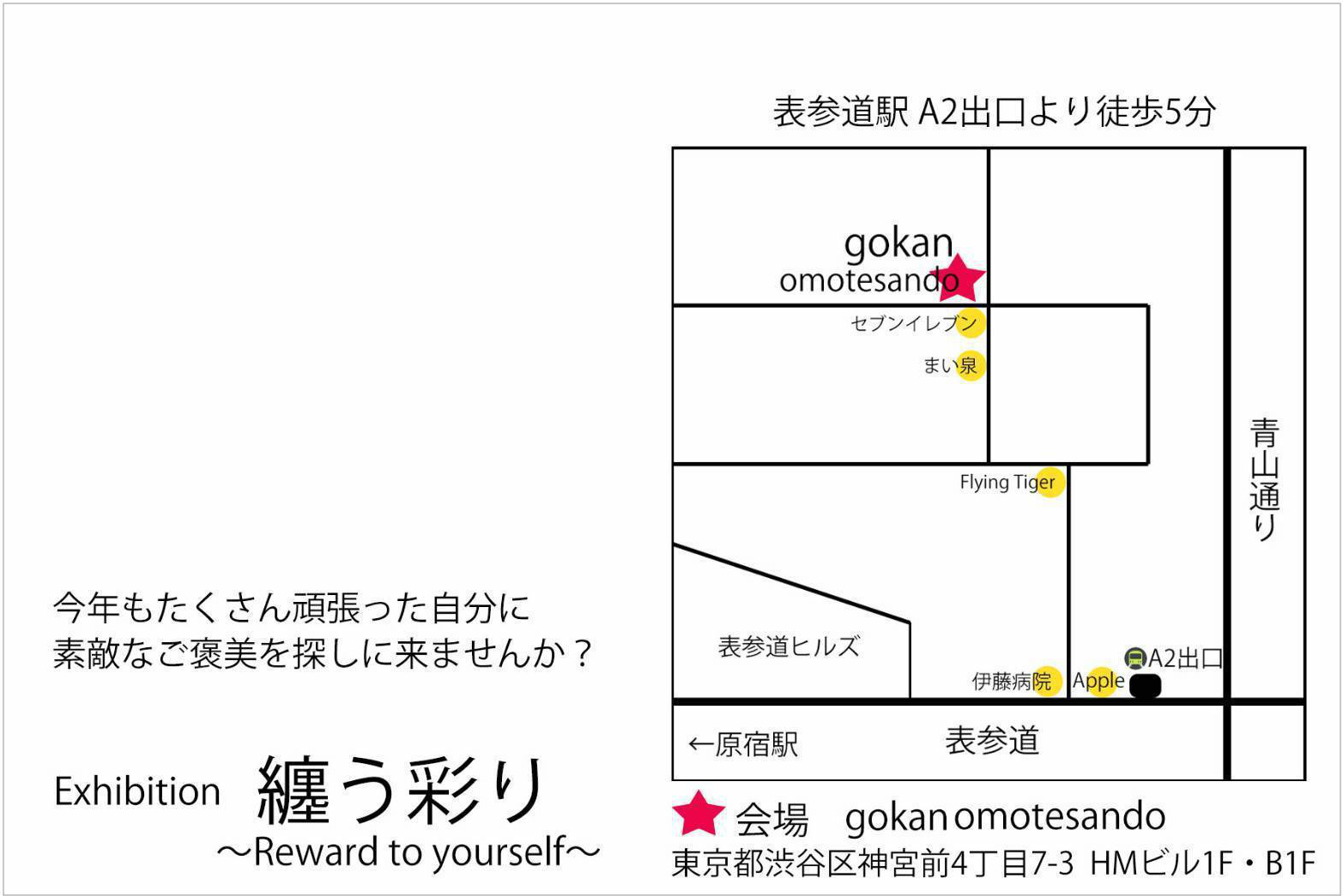 【場所】地下鉄各線「表参道」駅 徒歩5分A2出口